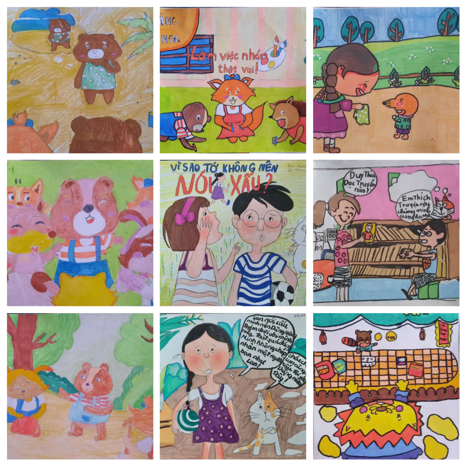 Bên cạnh đó, sự phối hợp chặt chẽ giữa giáo viên chủ nhiệm, giáo viên đứng tiết và cán bộ thư viện đã tạo nên những tiết đọc sinh động, hấp dẫn với nhiều hình thức phong phú như: kể chuyện theo sách, vẽ tranh theo nội dung sách, viết cảm nhận sau tiết đọc... Qua đó, học sinh được thể hiện bản thân, tăng sự hứng thú với sách và hình thành tình yêu đọc sách một cách tự nhiên.